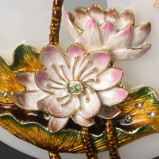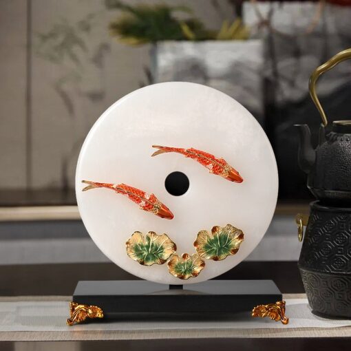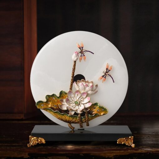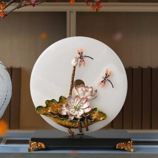 Tượng Đồng Điếu Ngọc Phong Thủy là món đồ trang trí tinh tế và sang trọng, kết hợp giữa vẻ đẹp của đá ngọc trắng và họa tiết đồng mạ vàng tinh xảo. Thiết kế hình chiếc đĩa tròn điếu ngọc biểu tượng cho sự viên mãn, hòa hợp và sự thịnh vượng. Sản phẩm mang lại vẻ đẹp nghệ thuật độc đáo, phù hợp trang trí phòng khách, bàn làm việc hoặc làm quà tặng cao cấp. Không chỉ có giá trị thẩm mỹ, tượng còn mang ý nghĩa phong thủy giúp cân bằng năng lượng, thu hút vận may và tài lộc cho gia chủ.