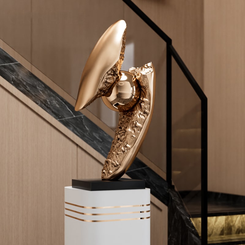 Một trong những không gian thích hợp khác để bày trí Tượng Đột Phá Đương Đại là sảnh khách sạn. Sảnh là nơi đầu tiên mà khách hàng hoặc khách mời tiếp xúc khi đến với khách sạn, và việc đặt một tác phẩm nghệ thuật như tượng ở đây sẽ tạo ấn tượng sâu sắc. Tượng Đột Phá Đương Đại không chỉ giúp không gian sảnh trở nên sang trọng và đẳng cấp mà còn thể hiện gu thẩm mỹ và sự chú trọng đến từng chi tiết của khách sạn.