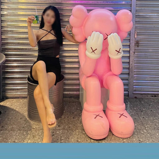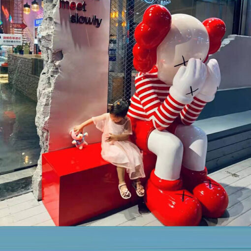 Tượng Gấu Kaws Che Mặt Phiên Bản Đỏ Trắng trang trí cửa hàng kinh doanh