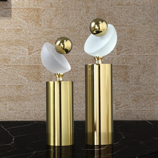 Sản phẩm được làm từ chất liệu kim loại mạ vàng. Phần trụ đứng bằng kim loại mạ vàng sáng bóng không chỉ tạo cảm giác sang trọng mà còn đảm bảo độ bền lâu dài. Các chi tiết trắng bán trong suốt được chế tác từ gốm sứ chất lượng cao, mang lại cảm giác mềm mại, nhẹ nhàng mà không kém phần tinh tế.