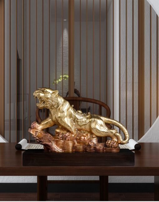 Sự Hòa Hợp với Nội Thất: Tượng hổ có thể dễ dàng kết hợp với các vật phẩm trang trí khác trong phòng khách, từ ghế sofa cho đến bàn trà, giúp không gian trở nên hài hòa mà vẫn giữ được sự mạnh mẽ.