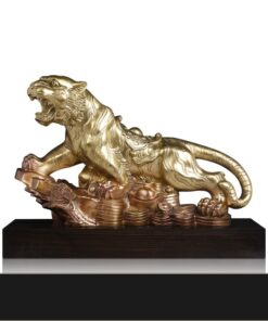 “Tượng Hổ Uy Phong Chiêu Tài” là một tuyệt tác nghệ thuật thể hiện sức mạnh và quyền lực của loài hổ – biểu tượng phong thủy mang đến sự may mắn, tài lộc và bảo vệ gia chủ khỏi những điều không tốt. Với dáng đứng oai nghiêm trên nền đồng tiền vàng, tượng toát lên khí thế uy mãnh và khí phách phi thường. Màu sắc vàng kim sang trọng kết hợp với các chi tiết tinh xảo tạo nên một sản phẩm không chỉ đẹp mắt mà còn mang ý nghĩa sâu sắc, phù hợp làm vật trang trí cho phòng khách, văn phòng hoặc không gian kinh doanh, giúp thu hút tài vận và nâng cao năng lượng tích cực cho không gian sống.