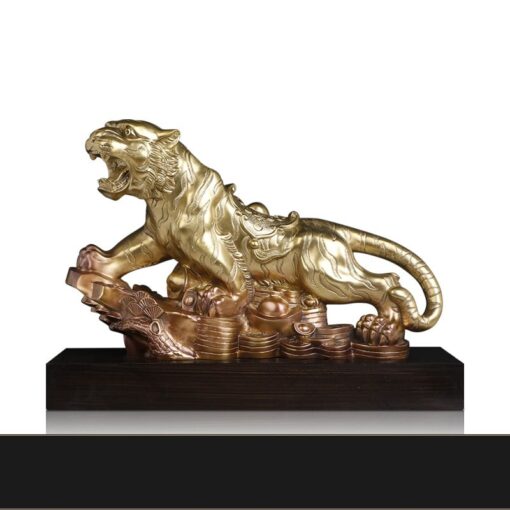 Màu Vàng Đồng Sáng Bóng: Màu sắc của tượng hổ là yếu tố giúp nó dễ dàng hòa hợp vào các không gian khác nhau. Vàng đồng không chỉ tạo sự lấp lánh mà còn thể hiện sự giàu có, thịnh vượng, là màu sắc đặc trưng của kim loại quý.