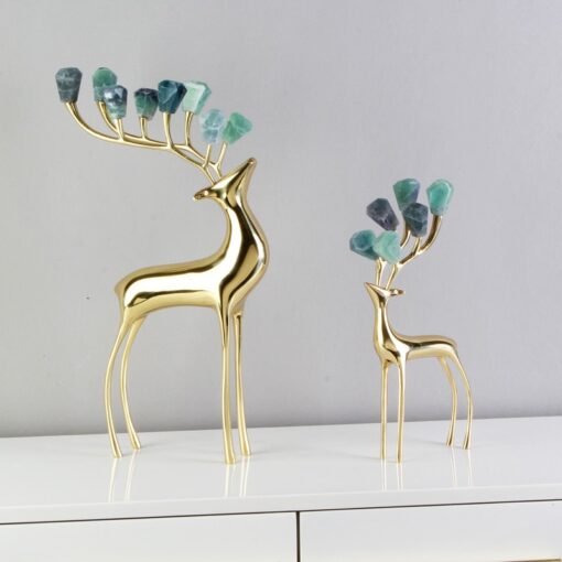Cặp Hươu Vàng Phong Thủy Đính Đá Thạch Anh xanh lá phong cách Bắc Âu
