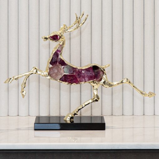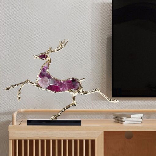 Tượng Hươu Ngọc Lan Tỏa Vẻ Đẹp gắn đá la lê màu để kệ tivi