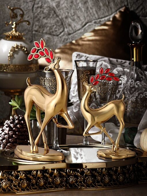 Khi được chế tác từ đồng – chất liệu biểu trưng cho sự bền bỉ và vững chắc – ý nghĩa phong thủy của tượng hươu càng trở nên mạnh mẽ hơn. Những chiếc lá pha lê đỏ gắn trên sừng hươu không chỉ làm tăng giá trị thẩm mỹ mà còn tượng trưng cho sự sinh sôi, phát triển và vận may dồi dào.