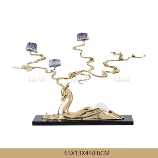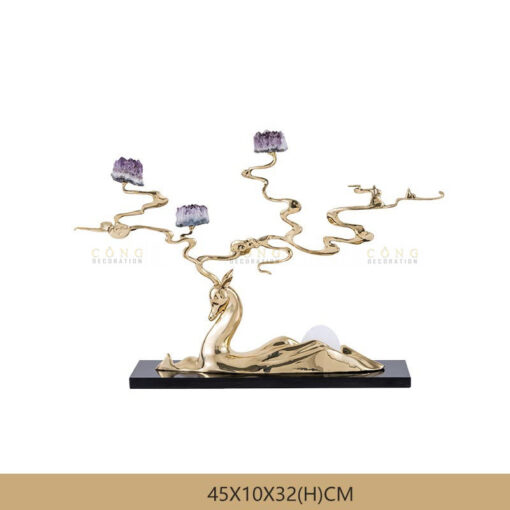 Tượng hươu nghệ thuật gắn đá thạch anh cao cấp.