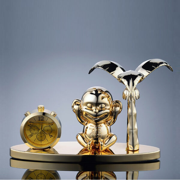Tượng Khỉ Tài Lộc được chế tác từ hợp kim cao cấp, bề mặt mạ vàng hoặc bạc sáng bóng, tạo nên vẻ đẹp sang trọng và hiện đại. Mỗi chi tiết trên tượng khỉ, từ ánh mắt lấp lánh đến nụ cười thân thiện, đều được chế tác tỉ mỉ, mang lại sự sống động, gần gũi.