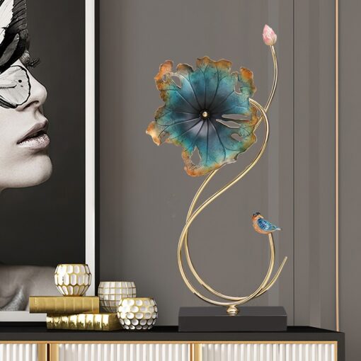 Tượng Lá Sen Nghệ Thuật và Chim Bói Cá trang trí mang phong cách cổ điển