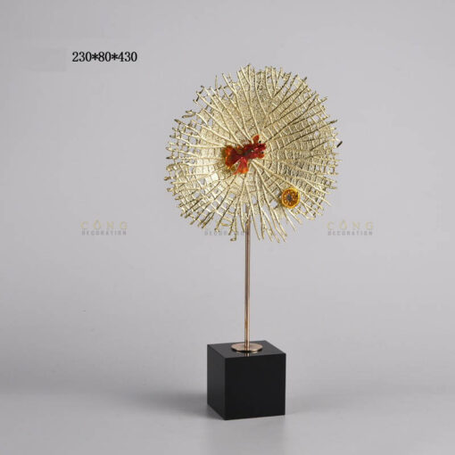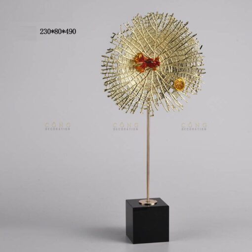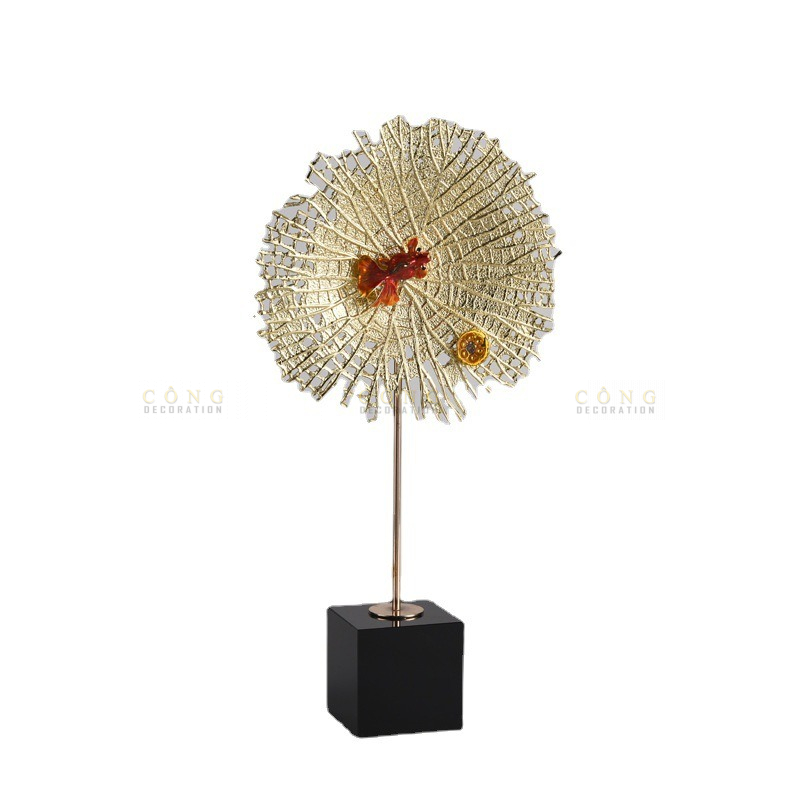 - Kệ trang trí phòng khách: Tượng lá sen vàng sẽ tạo điểm nhấn cho không gian phòng khách, đồng thời mang lại không khí ấm áp, thịnh vượng cho gia đình.