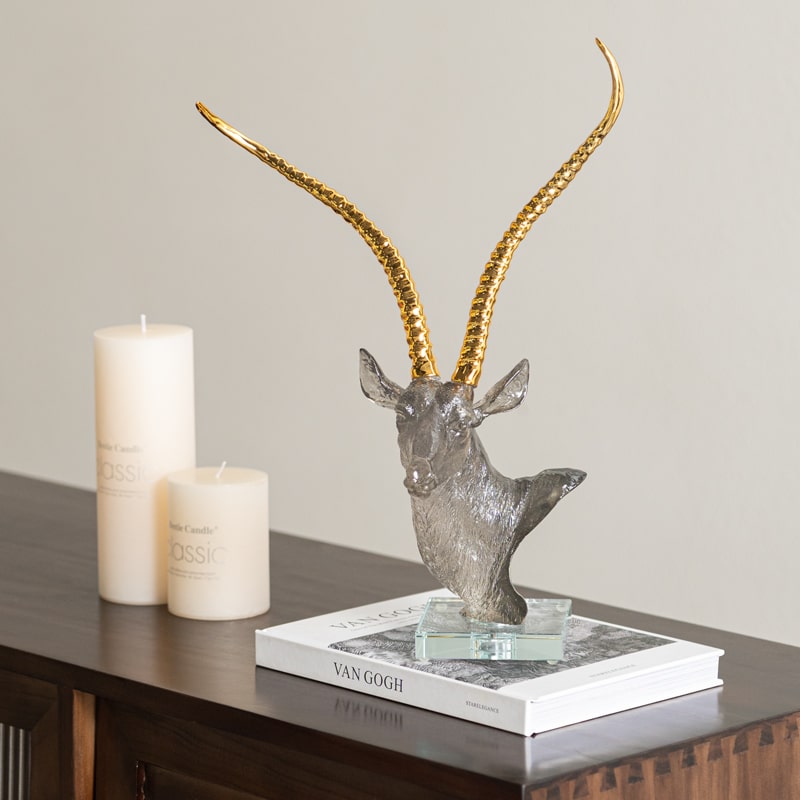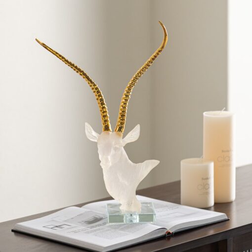 Sự kết hợp giữa hình ảnh linh dương mạnh mẽ và ánh sáng lấp lánh từ sừng vàng, cùng với đường nét tinh tế trong từng chi tiết, đã làm nên một món quà tân gia đầy ấn tượng. Mỗi chi tiết của sản phẩm được chăm chút cẩn thận, từ phần đầu đến phần thân, mang đến sự mạnh mẽ và thanh thoát cho người nhìn. Tượng Linh Dương Nghệ Thuật không chỉ là món đồ trang trí, mà còn là một phần không thể thiếu trong không gian sống sang trọng của gia chủ.