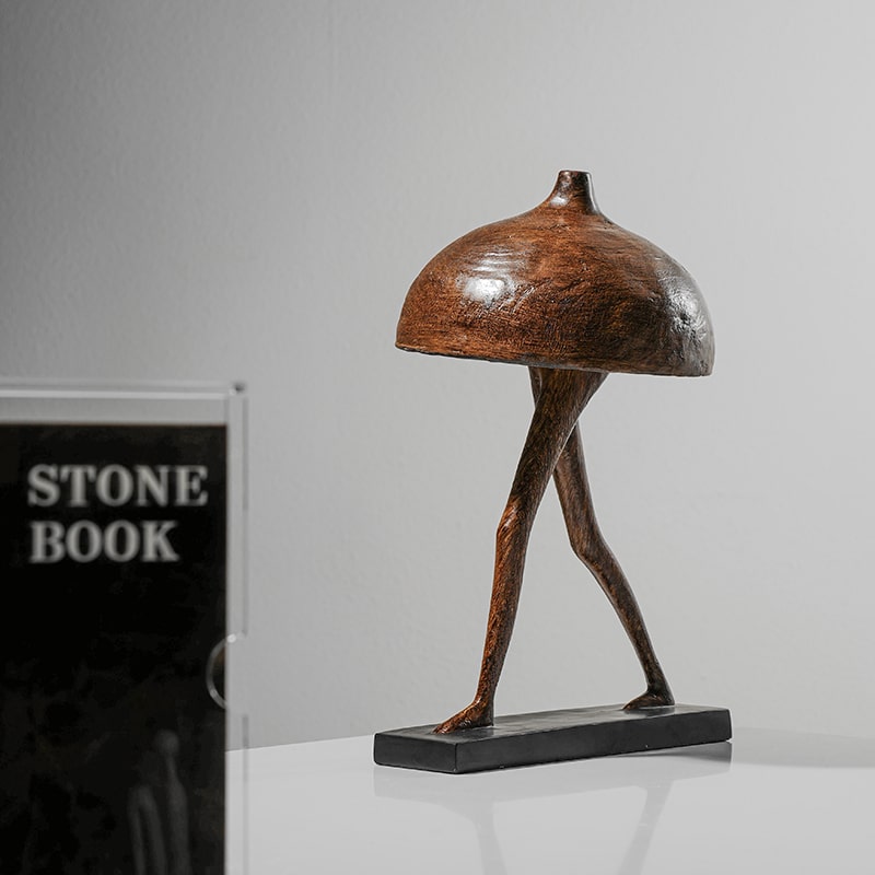 Tượng Nấm Nghệ Thuật Bước Đi Sáng Tạo là tác phẩm độc đáo kết hợp giữa hình ảnh nấm và đôi chân bước đi sinh động. Thiết kế này không chỉ mang tính thẩm mỹ cao mà còn thể hiện sự sáng tạo và mới mẻ trong nghệ thuật decor. Màu sắc gỗ nâu ấm áp kết hợp chân đế đen chắc chắn tạo nên vẻ đẹp tự nhiên và thanh lịch. Sản phẩm rất phù hợp để trang trí phòng khách, phòng làm việc hoặc không gian nghệ thuật, đem lại cảm giác vui nhộn, sáng tạo và năng động cho không gian sống.