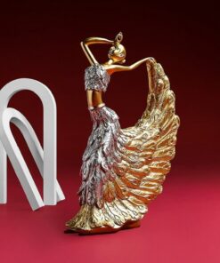 Tượng Nghệ Sĩ Múa Chim Công Cuốn Hút là tác phẩm nghệ thuật trang trí nội thất tinh tế, thể hiện vẻ đẹp uyển chuyển và duyên dáng của người nghệ sĩ trong điệu múa chim công lộng lẫy. Với thiết kế sắc nét, chi tiết từng cánh chim công được khắc họa sống động, tượng mang đến cảm giác chuyển động mềm mại và sự sang trọng cho không gian. Màu sắc phối hợp hài hòa, pha trộn giữa ánh vàng kim loại và sắc xanh độc đáo tạo điểm nhấn bắt mắt. Đây là món đồ trang trí lý tưởng cho phòng khách, phòng làm việc hay phòng trưng bày nghệ thuật.