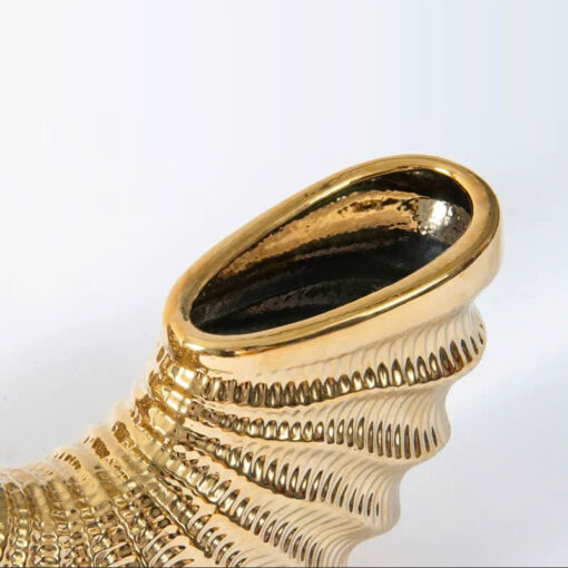 Đặc biệt, ánh kim vàng sáng bóng trên bề mặt tượng tạo ra một hiệu ứng ánh sáng nổi bật, làm cho tượng luôn thu hút sự chú ý ngay từ lần nhìn đầu tiên. Bề mặt gốm Ý mịn màng, được phủ lớp ánh kim sang trọng, mang đến vẻ ngoài quý phái và thanh thoát. Chính vì vậy, tượng trở thành một sản phẩm không thể thiếu trong các không gian sống sang trọng và hiện đại, góp phần nâng tầm giá trị của căn nhà.