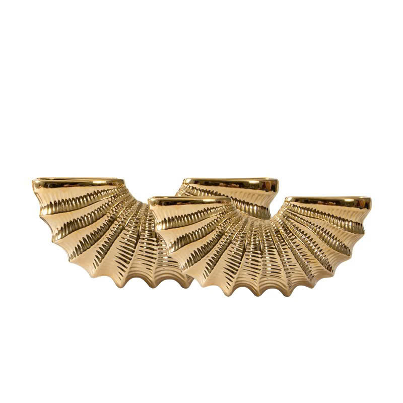 Tượng nghệ thuật bán nguyệt ánh kim cao cấp thu hút ánh nhìn với thiết kế hình bán nguyệt độc đáo, tinh xảo. Lớp phủ ánh kim vàng sang trọng giúp sản phẩm toát lên vẻ đẹp quyền quý và đẳng cấp, phù hợp với không gian nội thất hiện đại và sang trọng. Đường nét tinh tế kết hợp bề mặt bóng mịn tạo hiệu ứng ánh sáng tuyệt đẹp, giúp làm nổi bật không gian trưng bày. Đây là món đồ decor lý tưởng để trang trí bàn làm việc, kệ tủ hoặc phòng khách, tăng thêm phần ấn tượng và phong cách nghệ thuật cho ngôi nhà bạn.