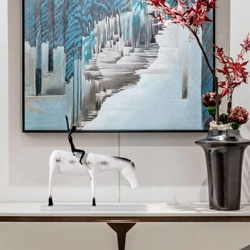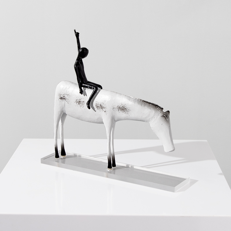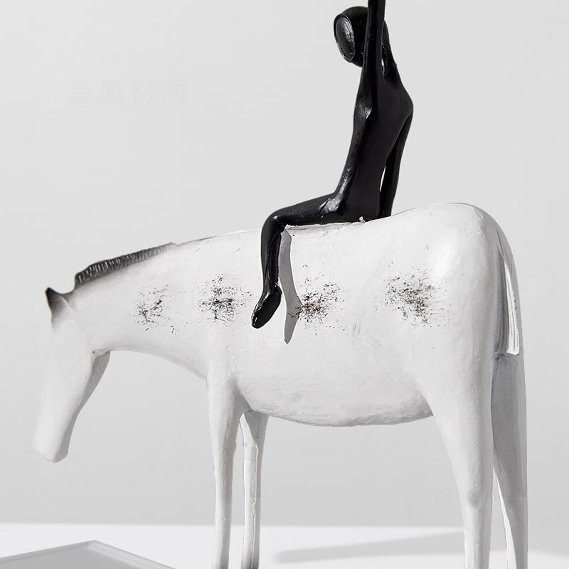 Tượng Nghệ Thuật Cưỡi Ngựa Phóng Khoáng là một tác phẩm đậm chất tự do và tinh thần phiêu lưu. Hình ảnh người cưỡi ngựa với tư thế giơ tay đầy phóng khoáng, tự tin thể hiện sự hứng khởi và khát khao khám phá. Tượng có sự kết hợp hài hòa giữa màu trắng của chú ngựa và màu đen bóng bẩy của nhân vật, tạo nên điểm nhấn thị giác cuốn hút. Kiểu dáng đơn giản nhưng biểu cảm sâu sắc, phù hợp để trang trí trong không gian hiện đại, mang đến cảm giác năng động, tràn đầy sức sống cho căn phòng. Đây chắc chắn là món đồ decor nghệ thuật lý tưởng cho những ai yêu thích sự tự do và cá tính.