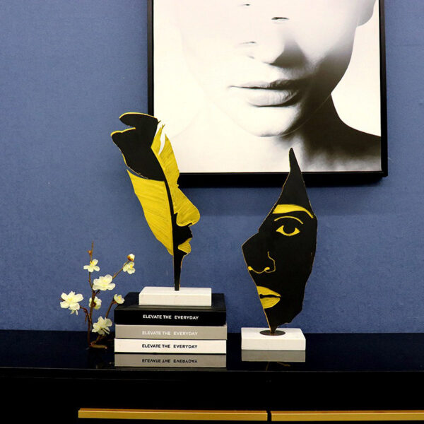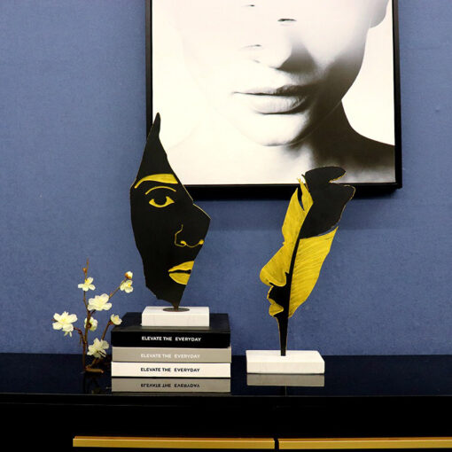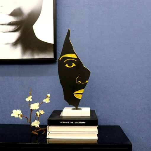 Với thiết kế gương mặt phá cách, tượng nghệ thuật này không chỉ là món đồ trang trí mà còn là biểu tượng của cá tính và gu thẩm mỹ khác biệt. Các chi tiết được tạo hình sắc nét, hài hòa giữa gam màu đen và vàng đồng, tạo nên sự tương phản đầy tinh tế. Đây là sự kết hợp hoàn hảo giữa nghệ thuật trừu tượng và phong cách tối giản đương đại.