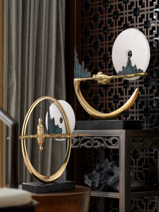 - Chất liệu cao cấp: Được chế tác từ đồng vàng và đế cẩm thạch, mang lại độ bền cao và vẻ đẹp sang trọng cho sản phẩm.