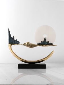 Tượng Nghệ Thuật Ngồi Thiền Vàng kết hợp núi độc đáo.