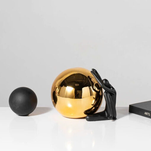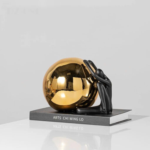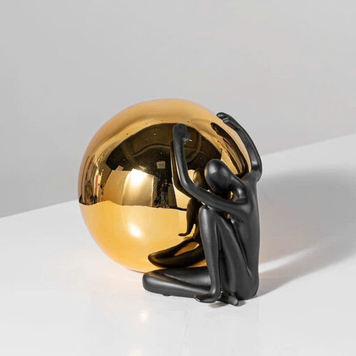 Tượng Nghệ Thuật Ôm Bóng Ánh Sáng Tinh Tế sở hữu thiết kế đầy sáng tạo và thu hút. Hình ảnh người ôm lấy quả cầu bóng vàng hoặc trắng mang đến cảm giác cân đối, mềm mại mà không kém phần mạnh mẽ. Với sự kết hợp giữa màu đen của nhân vật và sắc bóng sáng của quả cầu, sản phẩm tạo nên sự tương phản đầy tinh tế, khiến bất kỳ ai cũng phải chú ý khi bước vào không gian.