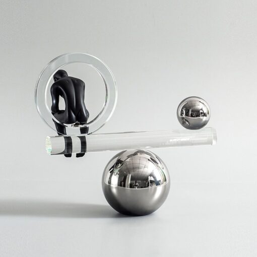 Tượng Nghệ Thuật Phản Chiếu Tư Duy là tác phẩm độc đáo kết hợp hài hòa giữa sự sáng tạo và triết lý sâu sắc. Với thiết kế cân bằng tinh tế giữa các hình khối tròn và trục thẳng, cùng hình ảnh người suy tư gợi mở cảm hứng về sự cân bằng và tư duy phản biện trong cuộc sống. Chất liệu kim loại sáng bóng kết hợp pha lê trong suốt làm tăng vẻ hiện đại và sang trọng cho không gian trưng bày. Đây là món đồ decor lý tưởng cho phòng làm việc, thư viện hay phòng khách.