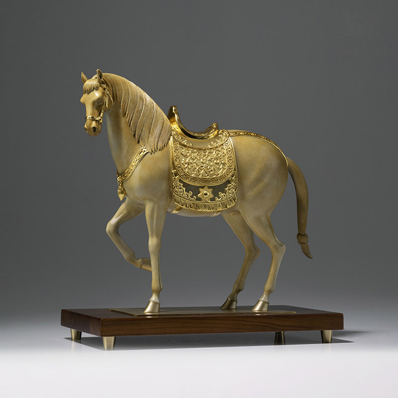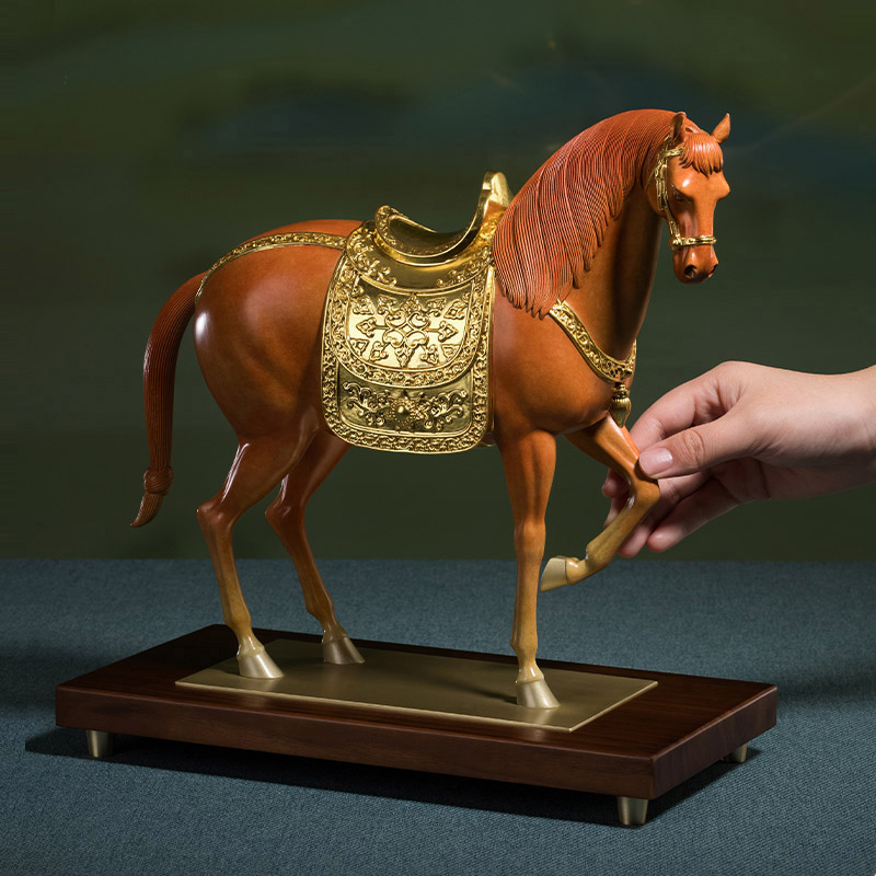 Lớp phủ hoàng kim trên tượng ngựa không chỉ mang lại giá trị thẩm mỹ sang trọng mà còn đại diện cho sự giàu sang, quyền lực và sự thịnh vượng lâu dài. Màu vàng là màu của hoàng gia, tượng trưng cho sự cao quý và vận khí cát tường.