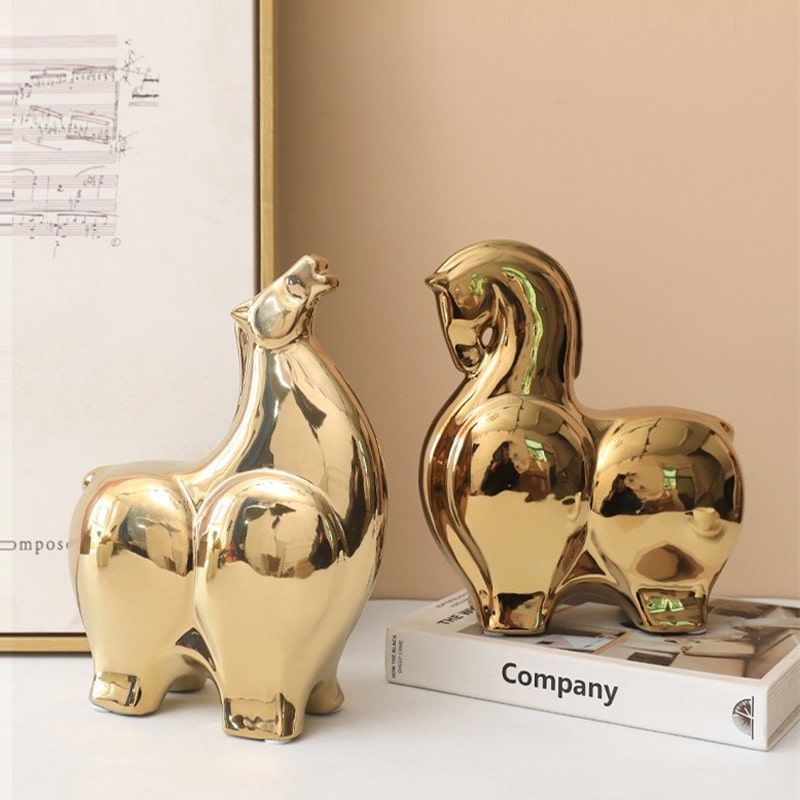 Tượng Ngựa Mạ Vàng Tinh Xảo có thiết kế hiện đại, với đường nét mềm mại và thanh thoát, mang đến vẻ đẹp tinh tế và sang trọng. Màu vàng mạ bóng lấp lánh tạo nên sự nổi bật cho sản phẩm, giúp tượng ngựa trở thành điểm nhấn ấn tượng trong mọi không gian. Đây là món quà không chỉ thể hiện sự tôn trọng mà còn là món đồ trang trí mang tính thẩm mỹ cao. Tượng ngựa mạ vàng tinh xảo sẽ làm tôn lên vẻ đẹp quý phái của ngôi nhà, phù hợp với những gia chủ yêu thích sự mới mẻ nhưng vẫn giữ được sự trang trọng.