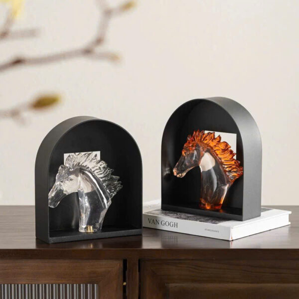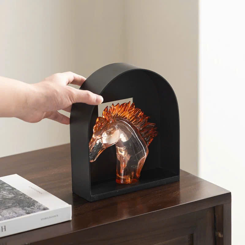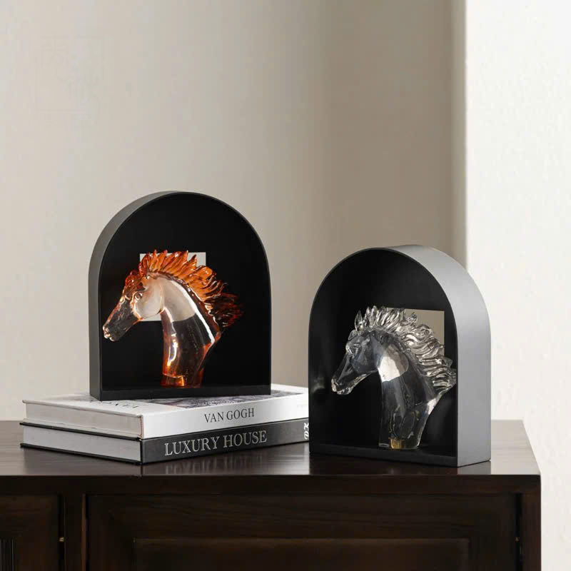 Tượng ngựa nghệ thuật cao cấp này là sự kết hợp tinh tế giữa sự sáng tạo và chất liệu đẳng cấp. Với phần thân ngựa trong suốt độc đáo và chi tiết tinh xảo, tạo nên vẻ đẹp huyền ảo và sang trọng. Khung đỡ màu đen hiện đại giúp nổi bật sản phẩm, phù hợp với nhiều phong cách trang trí từ cổ điển đến hiện đại. Đây không chỉ là món đồ trang trí mà còn là biểu tượng của sức mạnh, sự tự do và may mắn, rất thích hợp để đặt trong phòng khách hoặc phòng làm việc, mang đến nguồn cảm hứng và năng lượng tích cực cho không gian sống.