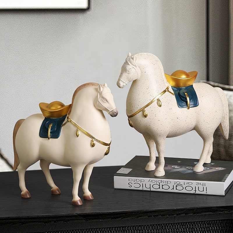 Tượng Ngựa Phong Thủy Kim Nguyên Bảo mang biểu tượng sức mạnh, sự bền bỉ và tài lộc. Với thiết kế tinh tế, sắc nét, những chú ngựa được trang trí thêm yên và kim nguyên bảo màu vàng sang trọng tạo nên vẻ đẹp quyền quý và may mắn. Màu sắc trung tính kết hợp vàng óng ánh làm nổi bật sự đẳng cấp và thu hút tài vận. Đây là món đồ decor phong thủy lý tưởng để đặt trong phòng khách hoặc phòng làm việc, giúp gia tăng nguồn năng lượng tích cực và thịnh vượng cho không gian sống.