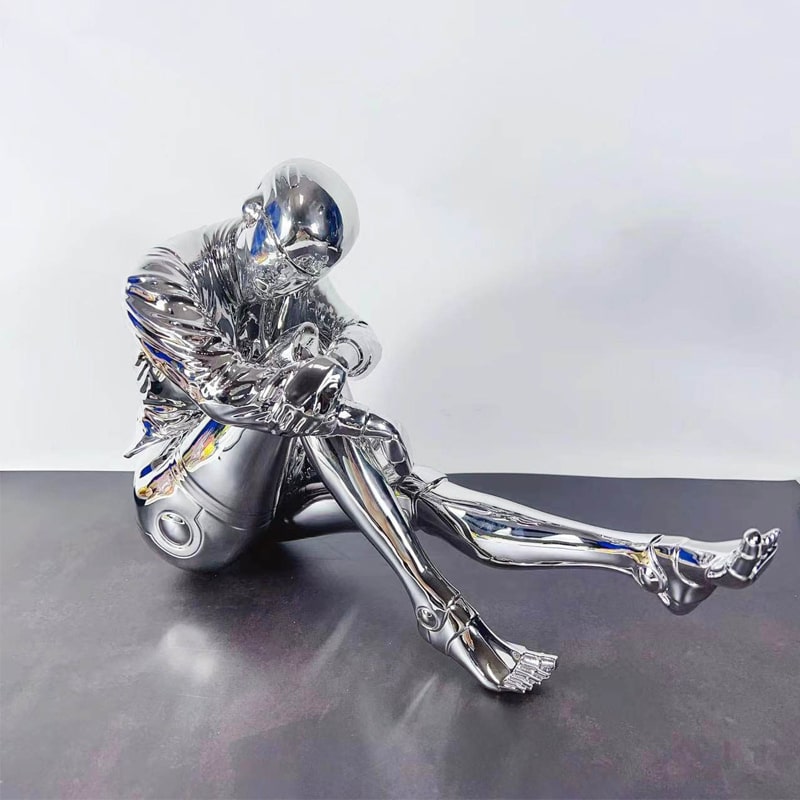 Tượng Người Máy Trầm Mặc là tác phẩm nghệ thuật hiện đại, kết hợp giữa sự lạnh lùng của kim loại và chiều sâu nội tâm qua tư thế ngồi trầm lặng. Bề mặt bóng loáng, sắc nét tạo nên vẻ đẹp công nghệ cao nhưng không kém phần tinh tế và sâu sắc. Sản phẩm thể hiện sự phản chiếu về con người trong thời đại số, phù hợp để trang trí phòng làm việc, phòng khách hoặc không gian sáng tạo, mang lại điểm nhấn nghệ thuật độc đáo và đầy cảm hứng.