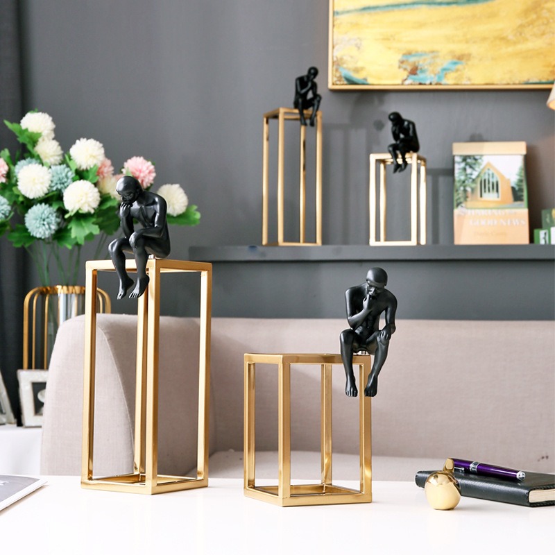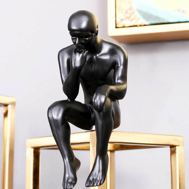 Màu sắc chủ đạo thường là các gam trung tính như đen, vàng ánh kim, giúp tượng dễ dàng hòa quyện với các phong cách nội thất khác nhau. Hình dáng người ngồi suy tư trên khung hình chữ nhật hay khối hộp tạo cảm giác cân bằng, hài hòa nhưng không kém phần ấn tượng.