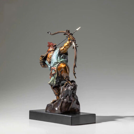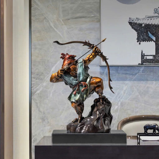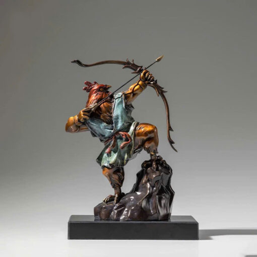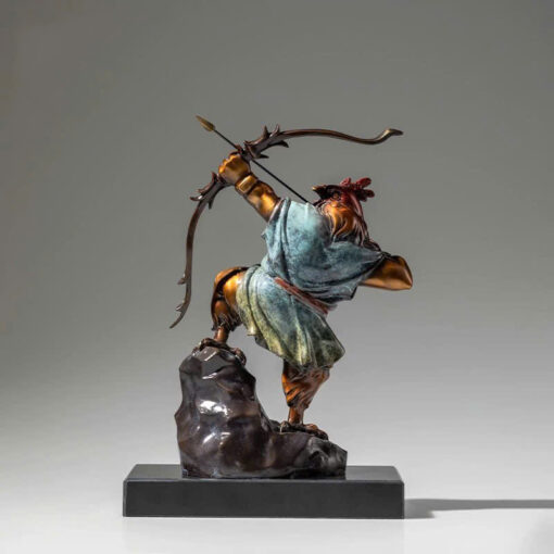 “Tượng Nhân Điểu Giương Cung” là biểu tượng tinh thần kiên cường và ý chí chiến đấu không ngừng nghỉ. Tượng mô phỏng hình ảnh nhân điểu – sinh vật thần thoại mang sự dũng mãnh và trí tuệ – đang giương cung căng đầy quyết tâm, sẵn sàng bắn trúng mục tiêu. Với từng chi tiết được chế tác tỉ mỉ, từ nét mặt sắc sảo đến bộ trang phục sinh động, tác phẩm không chỉ là món đồ trang trí nghệ thuật độc đáo mà còn mang ý nghĩa phong thủy thúc đẩy sự thành công, quyết đoán và sức mạnh cho gia chủ.
