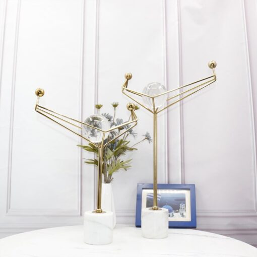 Tượng Pha Lê Chạm Vũ Khúc Tinh Tế là món đồ trang trí sang trọng với thiết kế uốn lượn nhẹ nhàng như bước nhảy uyển chuyển. Hai quả cầu pha lê trong suốt tạo điểm nhấn nổi bật trên đế đá cẩm thạch trắng thanh lịch. Sự kết hợp giữa pha lê và kim loại vàng ánh kim mang đến vẻ đẹp tinh tế, hiện đại, làm không gian thêm phần sinh động và năng động. Đây là lựa chọn hoàn hảo cho phòng khách, phòng làm việc hay góc trang trí, giúp lan tỏa năng lượng tích cực và phong cách độc đáo cho căn nhà bạn.