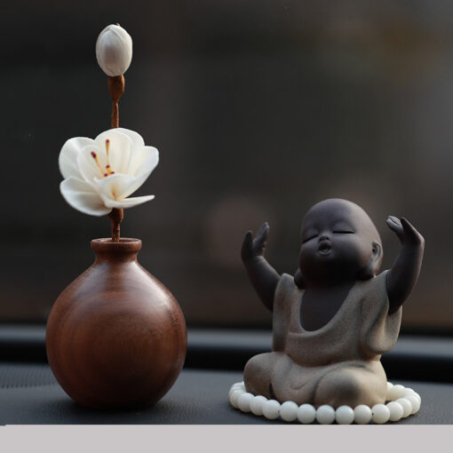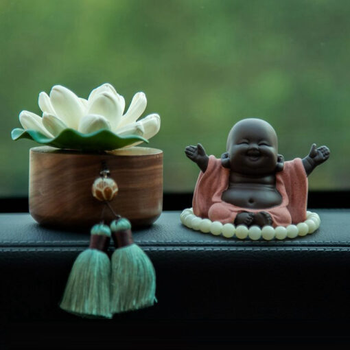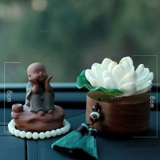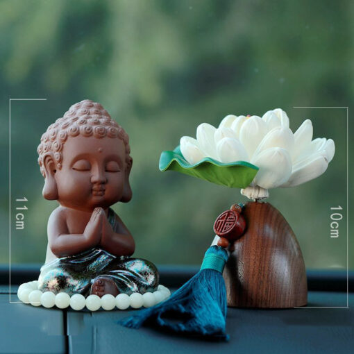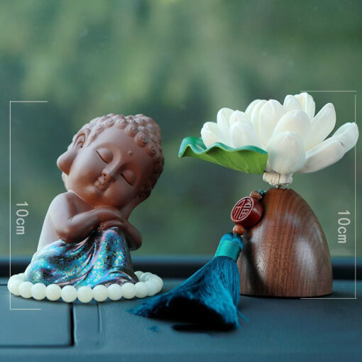 Bộ tượng chú tiểu bên hoa sen để trên ô tô xinh xắn