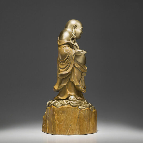 Phần bề mặt tượng được xử lý tinh xảo, giữ nguyên độ bóng mịn tự nhiên của đồng, đồng thời tạo ra cảm giác sang trọng, đẳng cấp. Với chất liệu này, tượng không chỉ bền bỉ với thời gian mà còn giữ được vẻ đẹp lâu dài trong mọi điều kiện sử dụng.