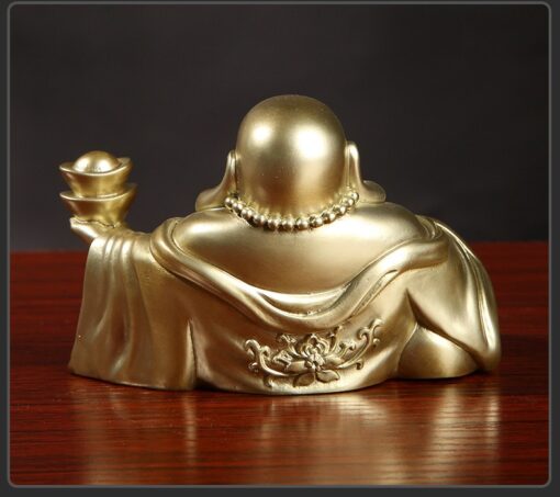 Chi tiết mặt sau mẫu Phật Di Lặc bằng đồng nguyên chất để oto