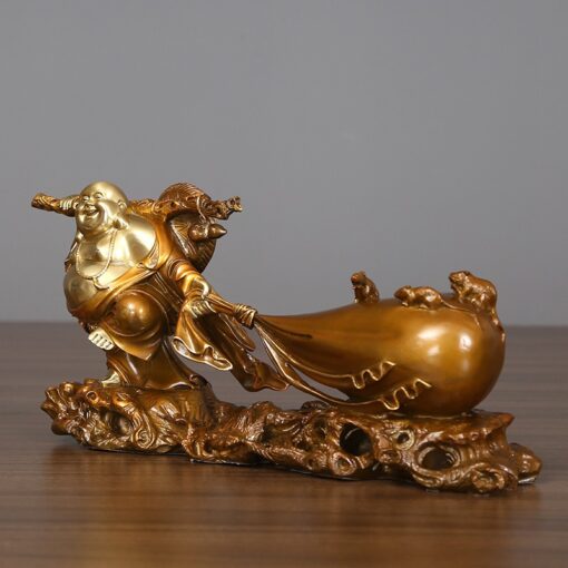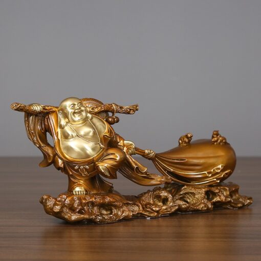 Tượng Di Lặc kéo tiền vàng trang trí không chỉ đẹp mà còn mang ý nghĩa chiêu tài lộc.