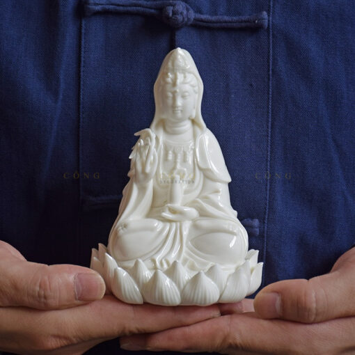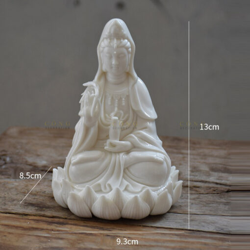 - Chất liệu cao cấp: Tượng được làm từ sứ cao cấp, với màu sắc thanh thoát, bóng mịn, tạo cảm giác sang trọng và nhẹ nhàng.