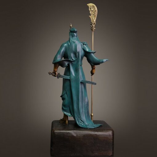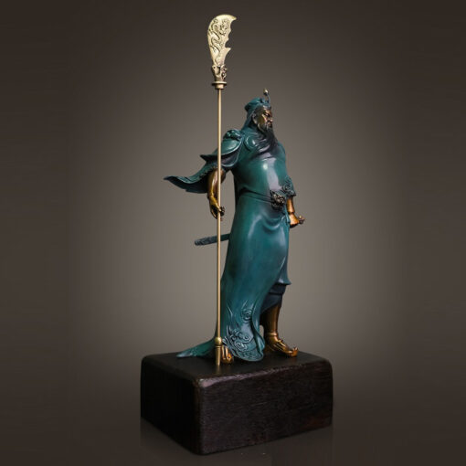 Hình ảnh Quan Công chống đao, tay cầm Thanh Long Yển Nguyệt Đao, trong sắc thái đồng xanh như bức tượng trên, mang đến khí chất uy nghi, hùng dũng, đại diện cho: