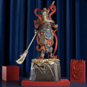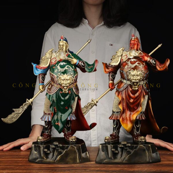 Quan Công, hay Quan Vũ, là một vị tướng huyền thoại thời Tam Quốc, nổi danh với sự trung thành, dũng cảm và tài trí. Trong văn hóa Á Đông, ông được tôn sùng như một vị thần bảo hộ, biểu tượng cho lòng trung nghĩa và sự chính trực. Tượng Quan Công được tạc trong hình ảnh oai nghiêm, tay cầm thanh long đao, mang đến năng lượng mạnh mẽ giúp xua đuổi tà khí và bảo vệ ngôi nhà.
