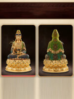 Tượng Quan Thế Âm Bồ Tát An Lạc Đế Sen Vàng là tác phẩm nghệ thuật tinh xảo, thể hiện sự từ bi, an lạc và quyền năng của Bồ Tát Quan Âm. Với đế sen vàng lộng lẫy và trang phục đậm nét truyền thống, tượng mang đến vẻ đẹp uy nghiêm, thanh tịnh cho không gian thờ tự hoặc phòng khách. Sản phẩm tượng phong thủy này không chỉ là biểu tượng tâm linh sâu sắc mà còn giúp thu hút năng lượng tích cực, bình an và may mắn cho gia chủ. Đây là lựa chọn lý tưởng để trang trí và cầu phúc cho gia đình.