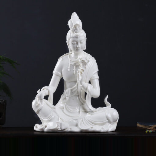 Tượng được chế tác từ sứ trắng cao cấp, mang đến vẻ đẹp tinh khôi, trang nhã và bền bỉ theo thời gian. Quá trình chế tác thủ công tỉ mỉ giúp tượng không chỉ là một tác phẩm nghệ thuật mà còn chứa đựng giá trị tâm linh và phong thủy cao.
