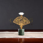 Tượng Quạt Sen Vàng Phú Quý được kết hợp với chân đế cẩm thạch sang trọng.
