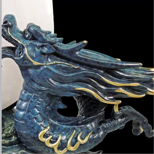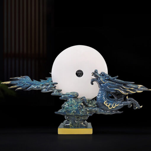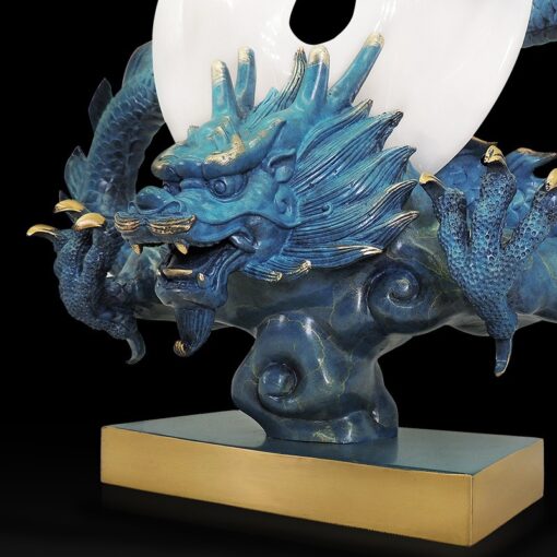 Tượng được thiết kế để tạo ra năng lượng phong thủy mạnh mẽ, với đường cong uốn lượn của thân rồng, tượng trưng cho sự vận động liên tục, không ngừng phát triển. Màu sắc chủ đạo của tượng là xanh dương và vàng kim, tạo sự kết hợp hoàn hảo giữa năng lượng dương mạnh mẽ và năng lượng âm tĩnh lặng, mang lại sự hài hòa và phát triển trong cuộc sống của gia chủ.