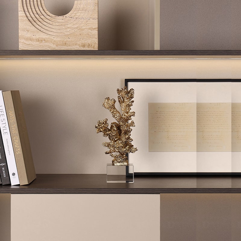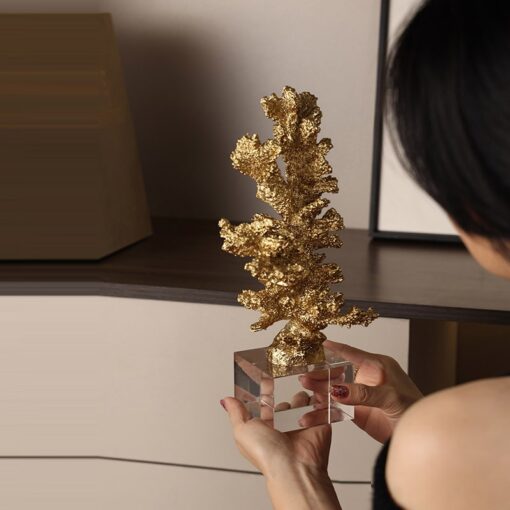 Tượng được tạo hình mô phỏng san hô biển – một biểu tượng thiên nhiên đại dương giàu sức sống. Với những nhánh san hô được phủ lớp mạ vàng sáng bóng, sản phẩm không chỉ đẹp mắt mà còn toát lên sự sang trọng, quý phái, thu hút mọi ánh nhìn.