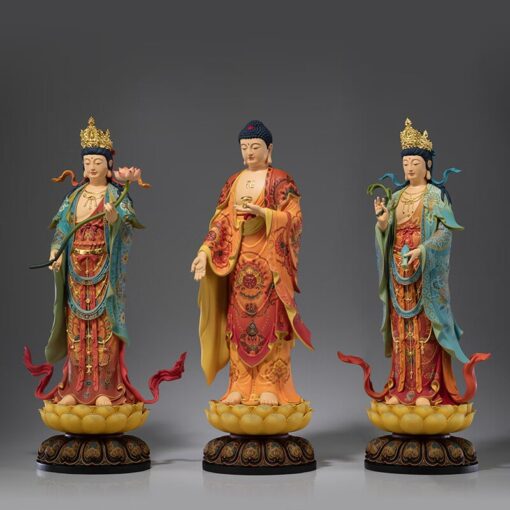 Bộ Tượng Tây Tam Thánh Đứng Trên Đài Sen – Biểu Tượng Phong Thủy Linh Thiêng