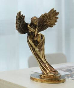 Tượng Thiên Thần Cứu Chuộc là một tác phẩm nghệ thuật tuyệt đẹp, mang đậm ý nghĩa tâm linh và sự che chở. Với tạo hình tinh tế, đôi cánh rộng mở uy nghiêm nhưng cũng rất dịu dàng, tượng thể hiện hình ảnh một thiên thần đang ôm ấp, bảo vệ với tình yêu thương sâu sắc. Màu sắc đồng vàng cổ điển càng tôn lên vẻ trang nghiêm và sang trọng, phù hợp làm điểm nhấn trang trí trong phòng khách, phòng làm việc hoặc không gian thiền định. Đây là món đồ decor không chỉ đẹp mắt mà còn mang lại cảm giác bình an và hy vọng.