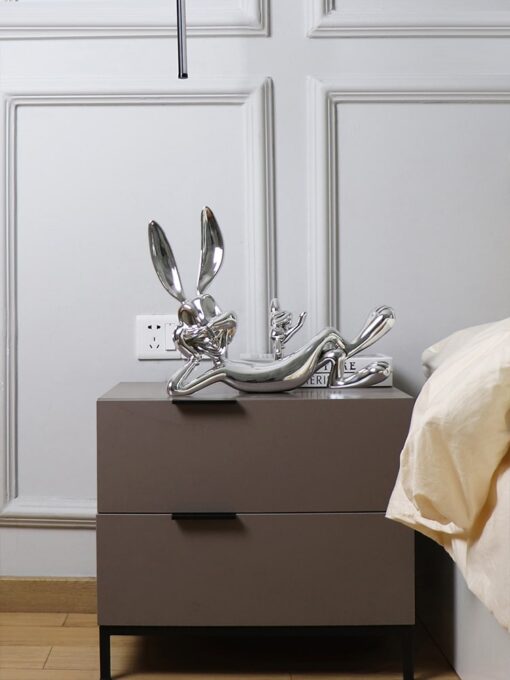 Tượng thỏ nghệ thuật là lựa chọn hoàn hảo để làm nổi bật phòng khách. Đặt tượng trên bàn trà, kệ sách hoặc bệ trang trí sẽ giúp không gian trở nên sinh động và đầy tinh tế.