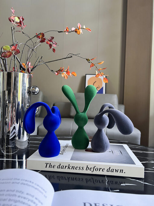 Tượng thỏ có thể trang trí cùng bình hoa hay bày biện cùng trà bánh