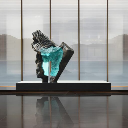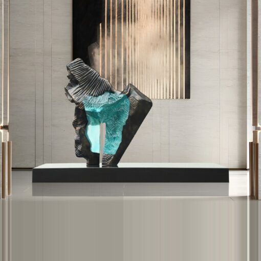 “Tượng Trừu Tượng Hòa Quyện Sắc Màu” là tác phẩm nghệ thuật độc đáo, kết hợp hài hòa giữa chất liệu đá tối màu và mảng pha lê xanh trong suốt, tạo nên hiệu ứng thị giác sâu sắc và đầy cảm xúc. Thiết kế trừu tượng với các đường nét gấp khúc, đan xen mang đến vẻ đẹp phức tạp nhưng cân đối, tượng trưng cho sự hòa hợp và cân bằng giữa các yếu tố đối lập. Sản phẩm thích hợp đặt trong không gian hiện đại như sảnh khách sạn, phòng trưng bày hoặc phòng khách sang trọng, góp phần nâng tầm giá trị thẩm mỹ và truyền tải thông điệp sâu sắc. Đây là món đồ decor nghệ thuật đẳng cấp và rất đáng để sở hữu.